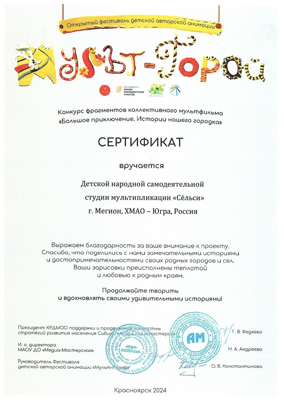 Народная самодеятельная студия мультипликации "Сёльси"